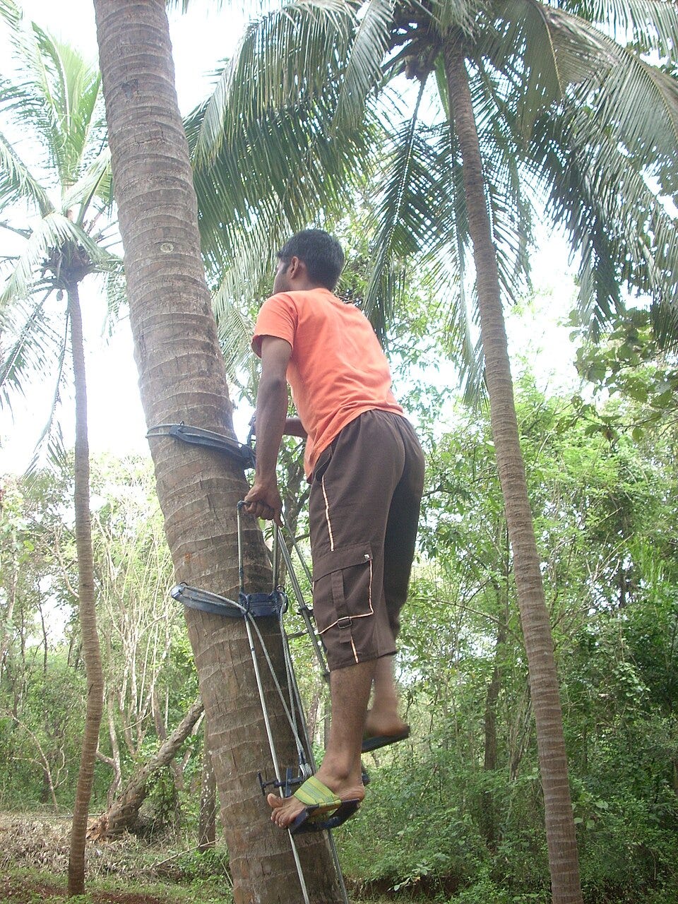 (Photo: A coconut tree climber in Kerala. Courtesy Wikipedia.)