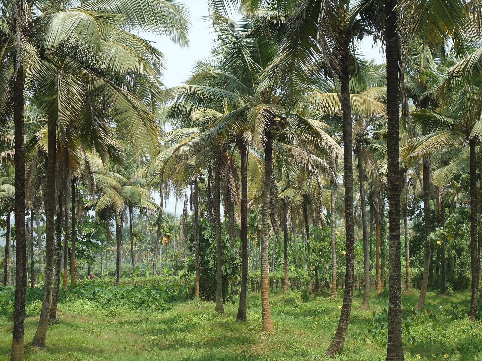 (Photo: A coconut farm in Kerala. Courtesy Wikipedia Commons.)