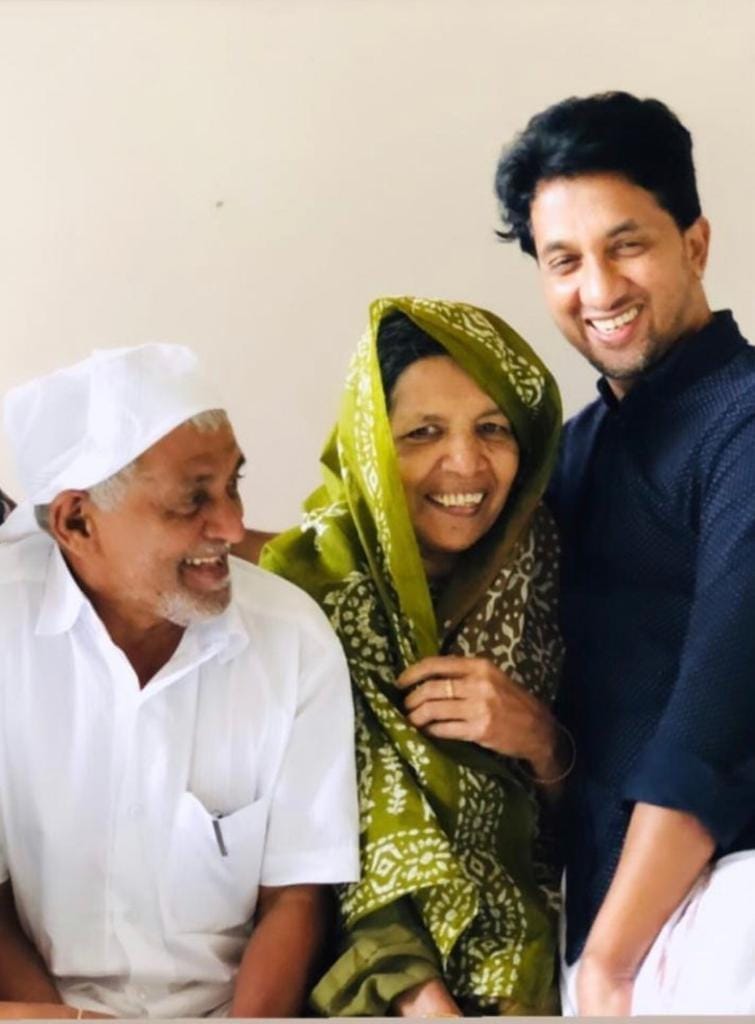 (Photo: PC Musthafa, co-founder iD Fresh Food, right, with his parents.)
