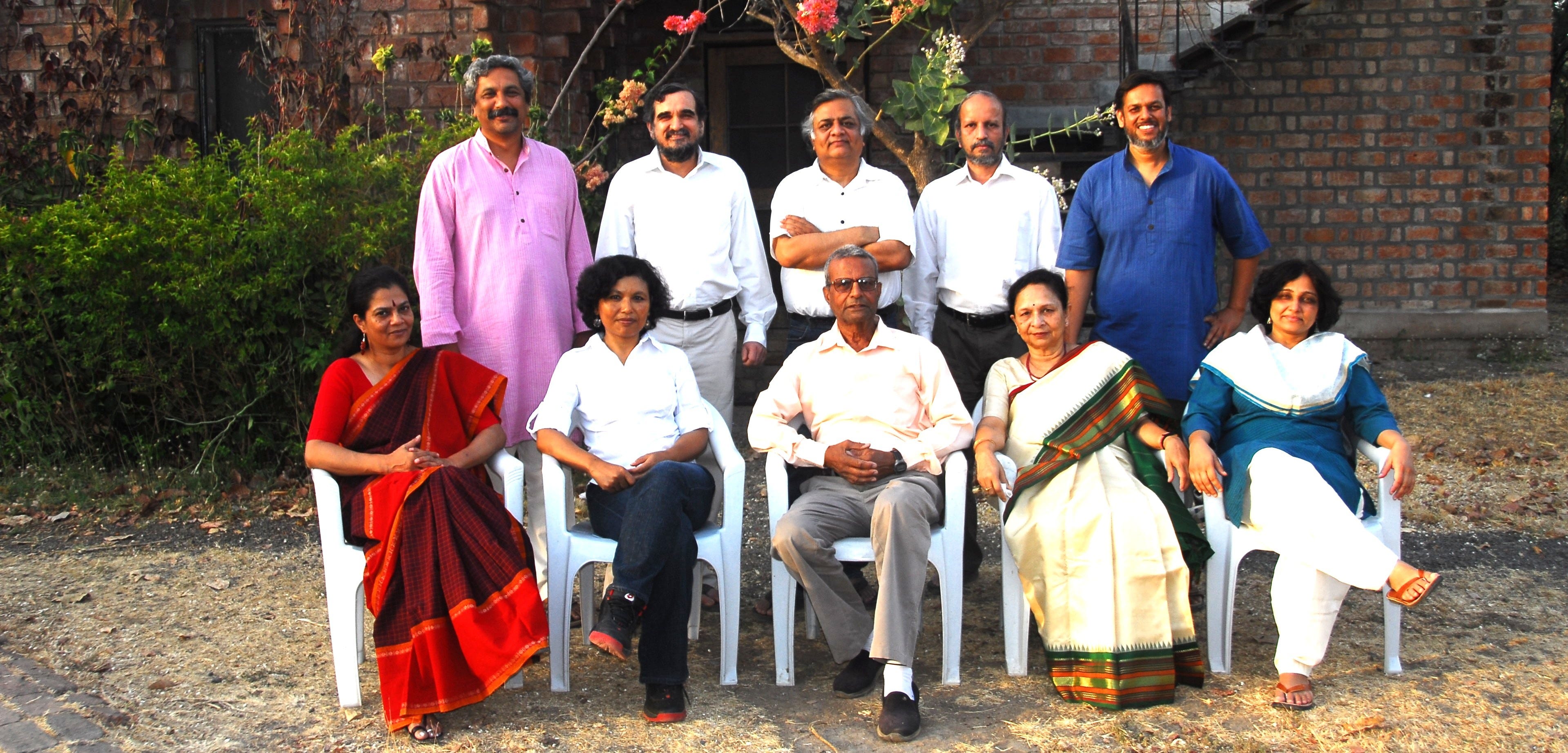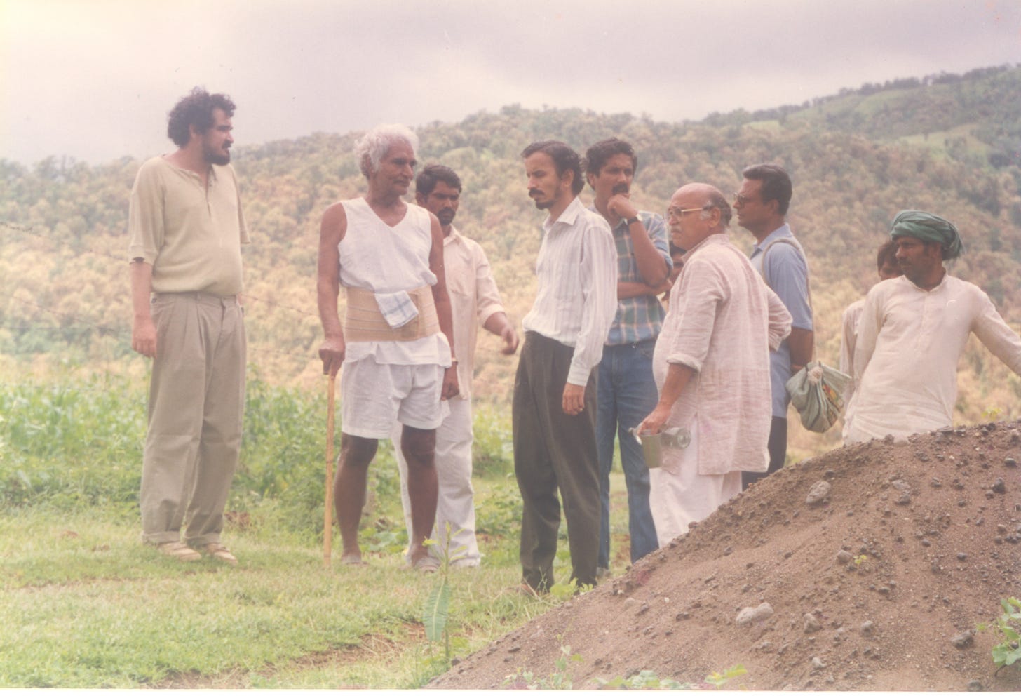 (Photo: Baba Amte, second from left, with founders of Samaj Pragati Sahayog. Mihir Shah at left. 1994. Photos courtesy Mihir Shah.)