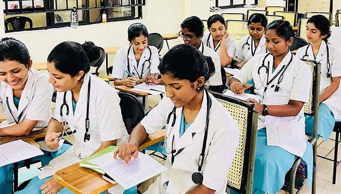 (Photo: nursing students at the Government College of Nursing, Ernakulam, Kerala; courtesy college.)