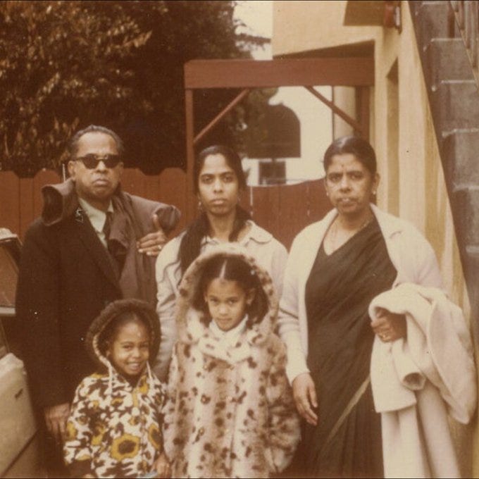 (Photo: Kamala Harris, front right, with her mother and grandparents during a visit to India.)